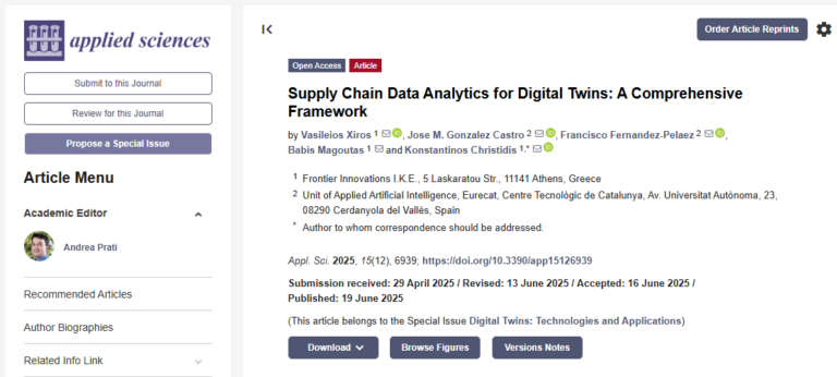 A new Plooto-related academic publication was accepted in the Journal Applied Sciences entitled “ Supply Chain Data Analytics for Digital Twins: A Comprehensive Framework”. The publication was authored by Vasileios Xiros, Jose M. Gonzalez Castro, Francisco Fernandez-Pelaez, Babis Magoutas, Konstantinos…